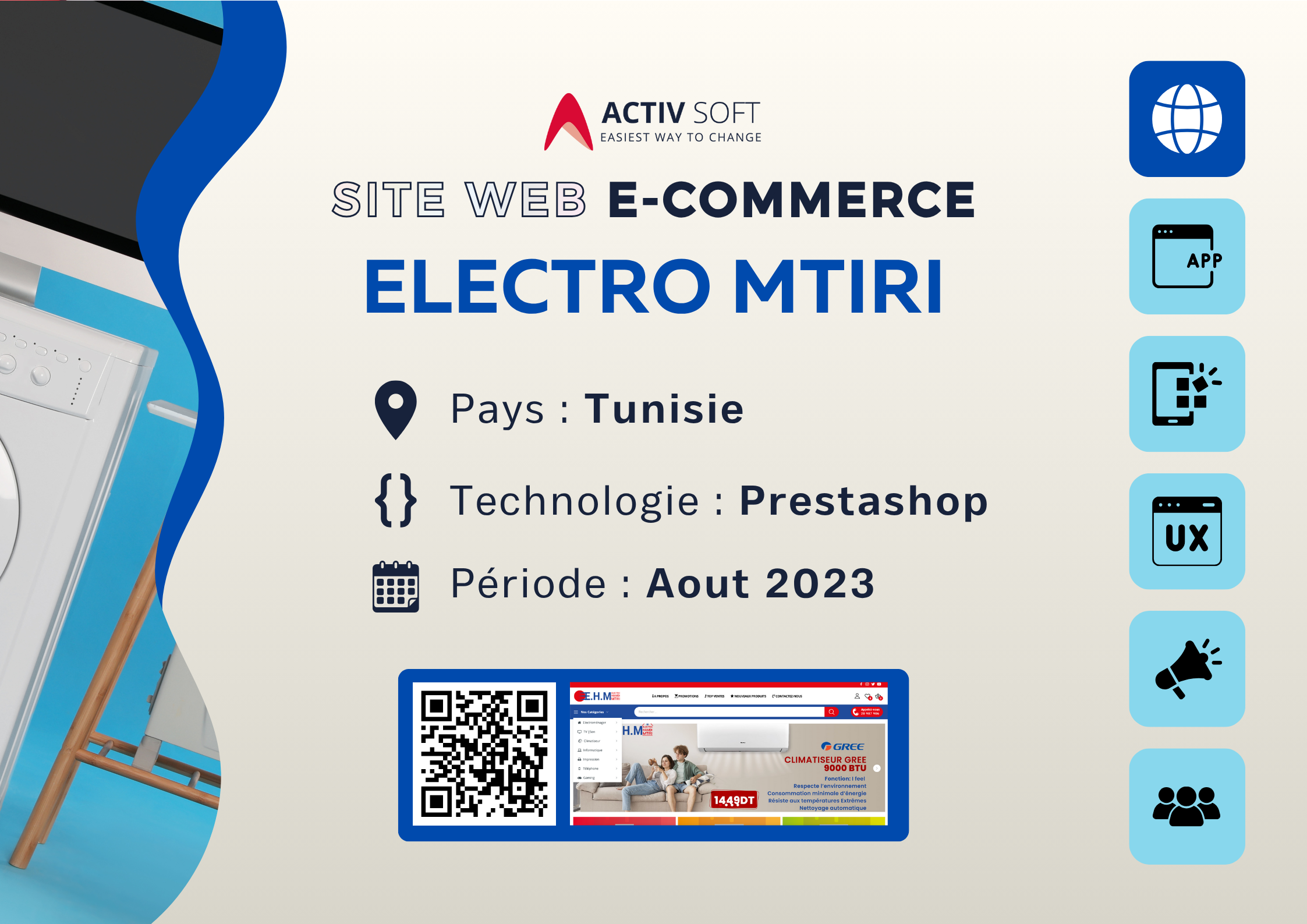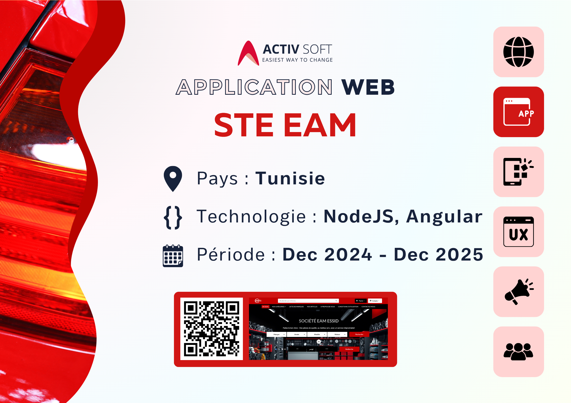 Notre portfolio met en avant la diversité et la qualité de nos réalisations dans le domaine des technologies de l’information. Chaque projet reflète notre expertise en développement web, mobile et en intégration sur mesure, ainsi que notre engagement à offrir des solutions innovantes, performantes et adaptées aux besoins spécifiques de nos clients. Découvrez comment Activ Soft accompagne ses partenaires à chaque étape, de la conception à la mise en ligne, pour transformer leurs idées en succès numériques.