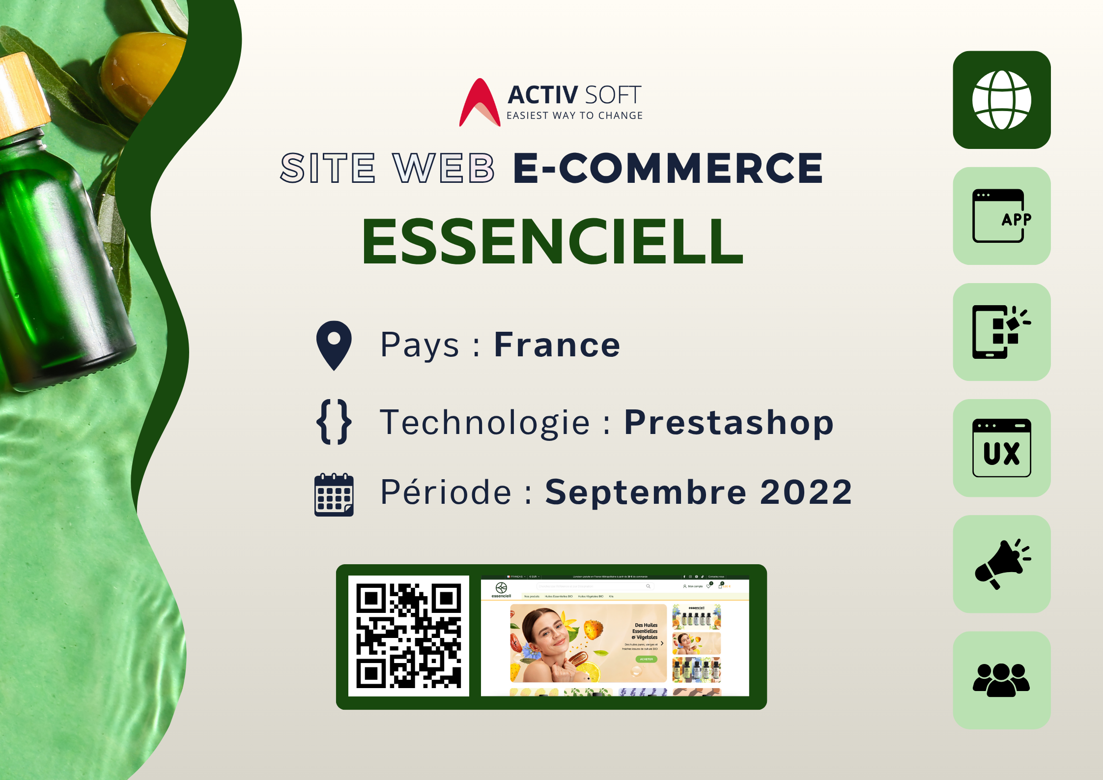 Nous avons accompagné Essenciell dans le développement de sa plateforme e-commerce, conçue pour proposer une gamme d’huiles essentielles et végétales de qualité dans un univers apaisant. Le site allie élégance visuelle et ergonomie soignée : navigation facile, mise en...