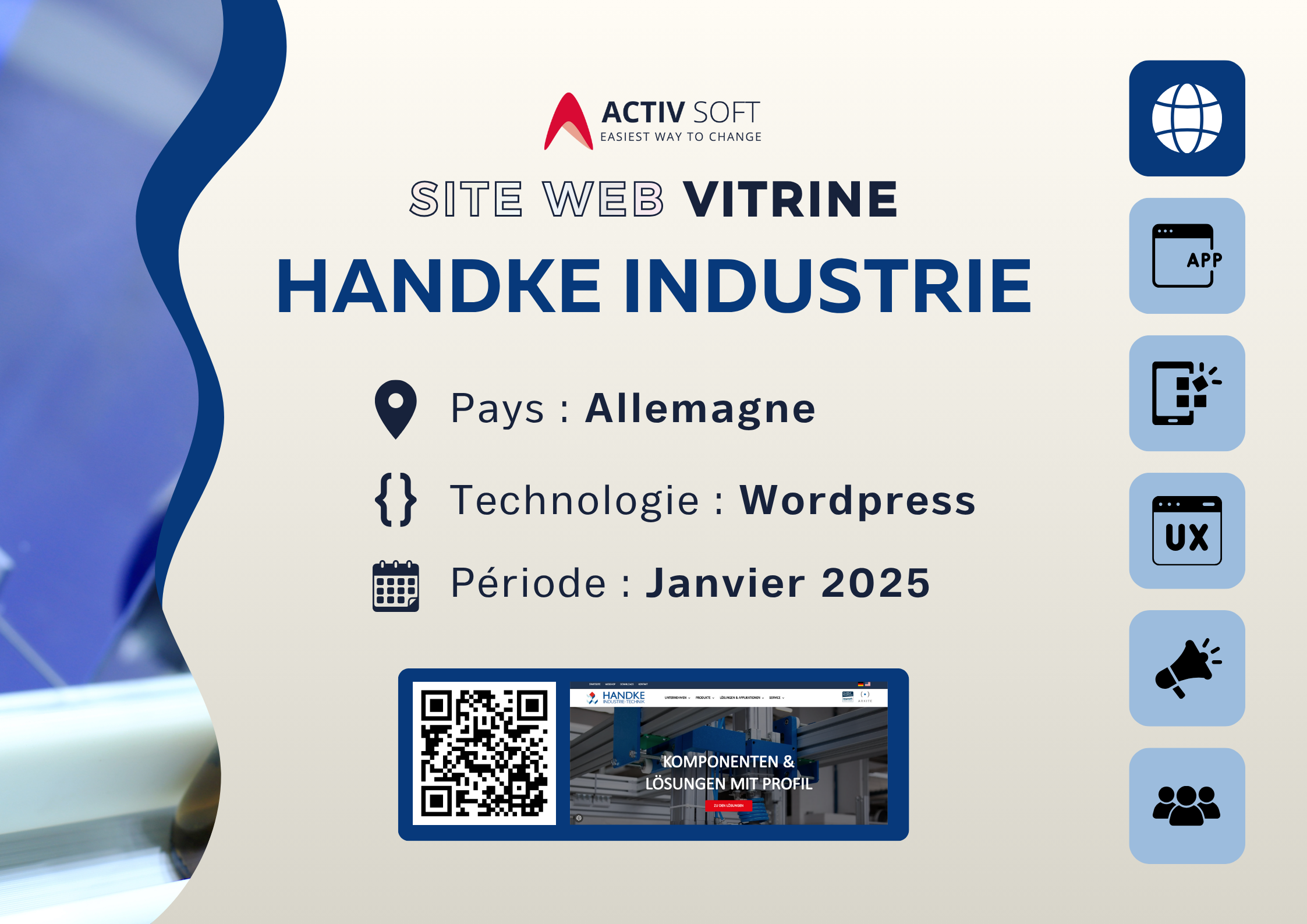 Nous avons réalisé pour Handke Industrie Technik un site vitrine professionnel mettant en valeur le savoir-faire et les solutions industrielles de l’entreprise. Le site a été conçu avec une approche sobre et moderne, reflétant la fiabilité et la précision propres au...